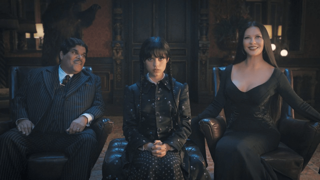 - Starring: Jenna Ortega, Catherine Zeta-Jones, Riki Lindhome, Gwendoline Christie